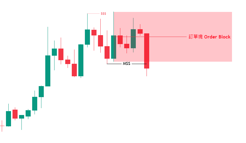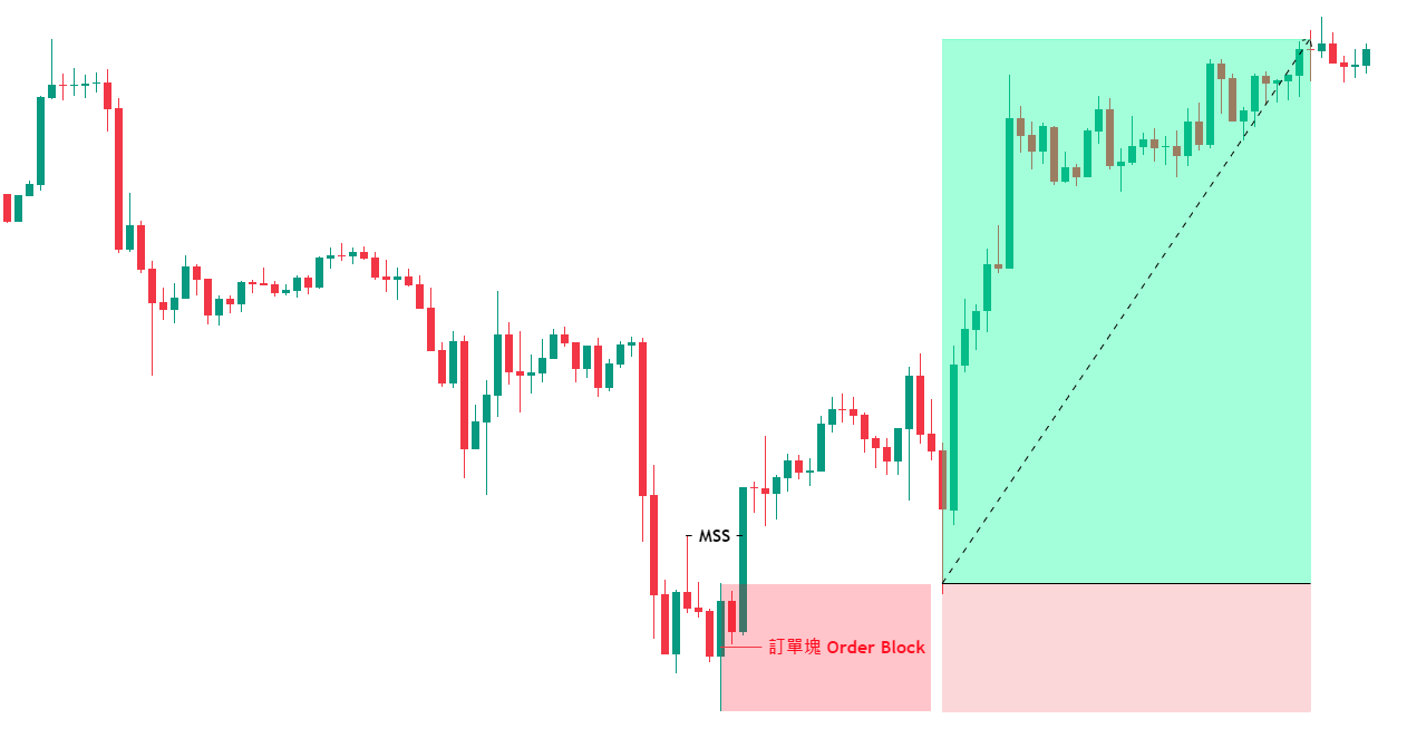 訂單塊英文原名為Order Block,顧名思義指的是在這個結構主力訂單主要進場的位置,我們可以透過識別訂單塊構建出入場的模型,來增加入場的勝率及盈虧比。
