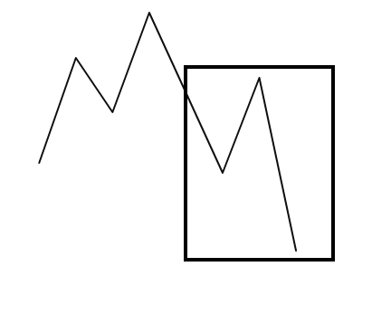 結構往往代表的多空市價攻擊的訂單出現了勝利的一方,以圖一舉例,當價格出現了看跌的結構,往往意味著看漲的一方衰弱,看跌的一方更為強勢,我們可以把這個看跌的結構拆為兩個階段,一個是向上的攻擊,一個是向下的攻擊